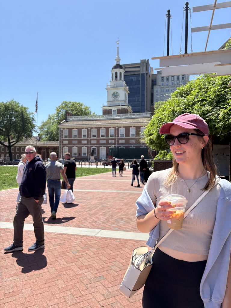 Wir sind gegen 10 Uhr angekommen und sind zuerst am Delaware River entlang gelaufen, wo man die Benjamin Franklin Bridge schön sehen konnte. Nachdem wir ein paar Minuten an einem Pier gesessen haben, auf die Brücke geschaut und uns einen Plan für den Tag gemacht haben, sind wir zur Elfreth’s Alley gelaufen, das ist einfach eine schöne alte Straße. Eine Straße weiter waren wir bei dem Haus, in dem die erste amerikanische Flagge entworfen wurde. Eigentlich war das nicht sonderlich spektakulär, es war nur ein kleines Haus, ein Garten und ein Souvenirshop. Ich glaube, es hätte auch ein kleines Museum gegeben, da waren wir aber nicht drin. Es war aber trotzdem sehr cool, dort zu sein und das einfach mal gesehen zu haben. Anschließend sind wir nach einem kurzen Stopp bei Starbucks zur ersten Episkopalkirche Amerikas gelaufen und haben uns dort ein bisschen in den kleinen Garten gesetzt. Wir haben uns die Kirche auch kurz von innen angeschaut, sie war klein und schlicht, aber trotzdem schön. Danach sind wir zur Independence Hall gelaufen und haben uns die Liberty Bell angeguckt. Das ist ja eine Glocke, die eine sehr große Bedeutung für die Geschichte Amerikas hat, sie steht vor allem für Freiheit. Diese Glocke war an sich nicht so krass, es ist halt eine große Glocke, aber auch hier ist es wieder cool, das mal gesehen zu haben.
