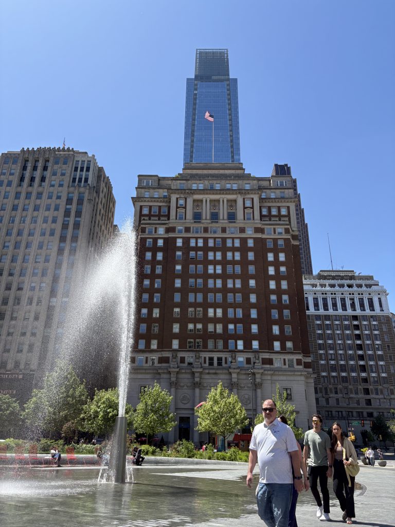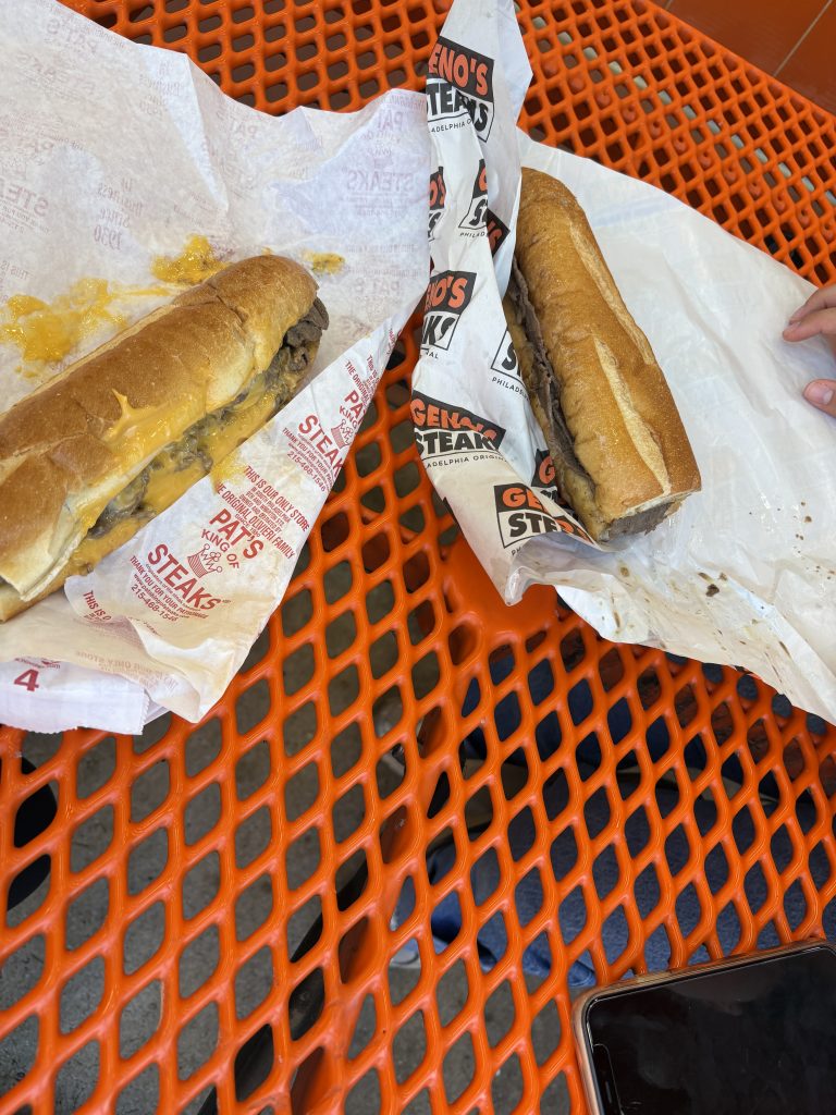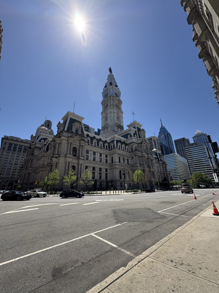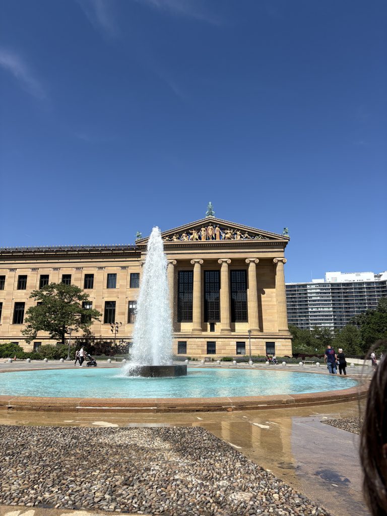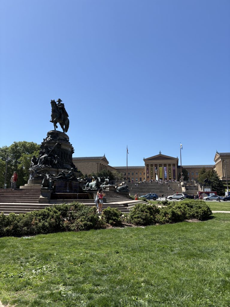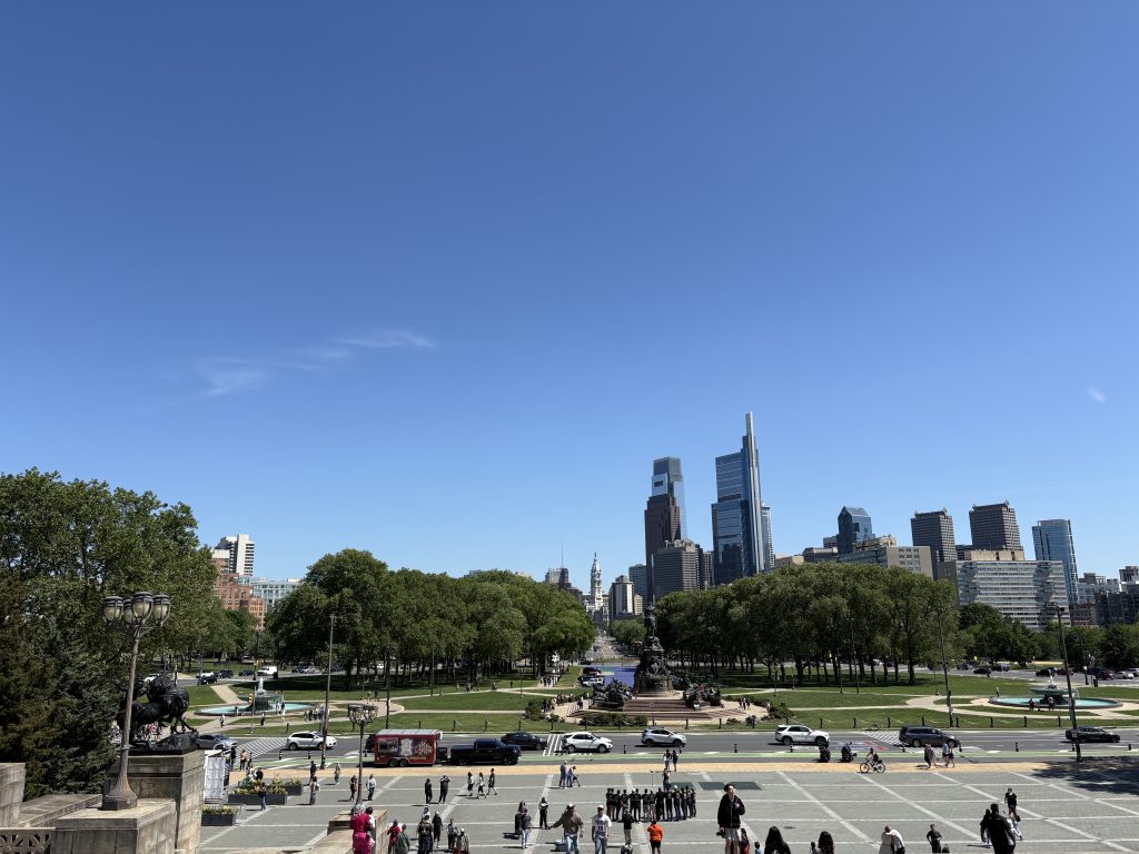 Von dort sind wir zum Reading Terminal Market gelaufen, das ist eine große Markthalle, wo wir uns auch etwas Kleines zu essen gekauft haben. Auf dem Weg dorthin sind wir übrigens auch an dem Hotel vorbeigekommen, in dem meine Gastmutter, die Kinder und ich im November übernachtet hatten. Anschließend sind wir durch die Innenstadt Philadelphias, vorbei am Rathaus, über den John F. Kennedy Plaza zum Philadelphia Museum of Art gelaufen, dort wurden ja berühmte Szenen des Films „Rocky“ gedreht. Vom Museum aus hatte man auch einen schönen Blick auf Philadelphia. Wir sind dort also kurz herumgelaufen, haben Fotos gemacht, unter anderem mit einer der Rocky Statuen, und sind dann weitergegangen. Anschließend haben wir nämlich Philly Cheese Steaks probiert, das ist ein sehr typisches Essen für Philadelphia. Eigentlich ist das einfach nur ein weiches Baguette mit Steak-Stücken und Käse drin. Es war aber ziemlich lecker. Danach sind wir auch schon wieder zur Bushaltestelle gegangen und sind zurück nach New York gefahren. Es war ein sehr gelungener, sonniger Tag! Wir haben alles gesehen, was man so in Philadelphia gesehen haben sollte und das an nur einem Tag! Ich finde das sehr cool, dass es von New York aus so viele leicht zu erreichende Städte gibt, die man sich so „mal eben“ an einem Wochenende oder sogar nur an einem Tag anschauen kann.