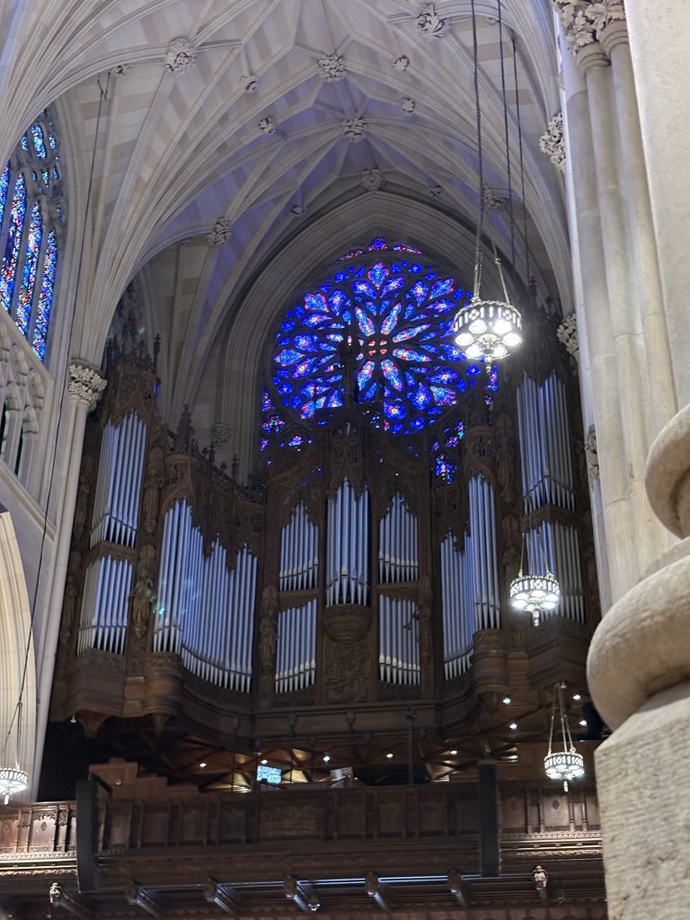 Am nächsten Tag waren wir zu dritt in Manhattan. Dort angekommen sind wir zur Aussichtsplattform SUMMIT One Vanderbilt gelaufen. Das sind drei Etagen mit verschiedenen Räumen, in denen man immer auf Manhattan schauen kann, manchmal gibt es aber auch noch andere Dinge zu sehen und zu tun. Auf dem Weg dorthin waren wir in einem etwas größeren und schickeren Starbucks und sind außerdem am Bryant Park vorbeigelaufen, bevor wir uns noch das Grand Central Terminal angeguckt haben und letztlich an der Aussichtsplattform angekommen sind. Dort haben wir einige Zeit verbracht, Fotos gemacht und die Aussicht genossen. Das war auch für mich das erste Mal, dass ich Manhattan von oben gesehen habe und es war eine echt coole Erfahrung! Anschließend sind wir zum Times Square gelaufen und haben dort auch etwas zu Mittag gegessen. Danach waren wir in der Nähe des Rockefeller Centers in der St. Paul‘s Cathedral und im Lego Store, was beides auf sehr unterschiedliche Weise cool war! Als wir dort fertig waren, sind wir auch schon wieder nach Hause gefahren, wo es bald Abendessen gab. Danach waren wir noch bei Walmart und Target, das wollten die beiden nämlich gerne sehen.