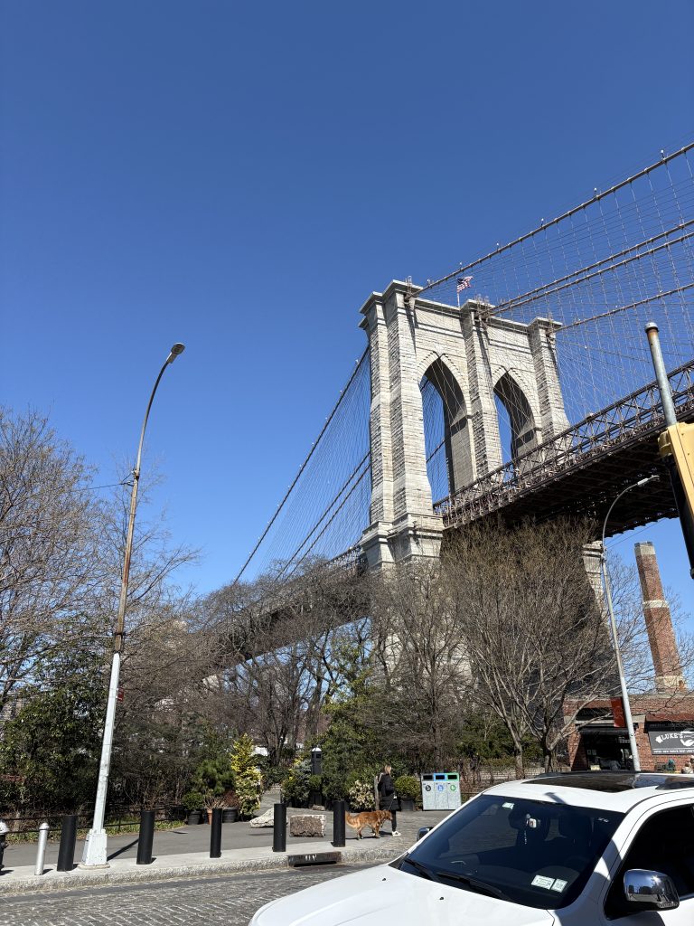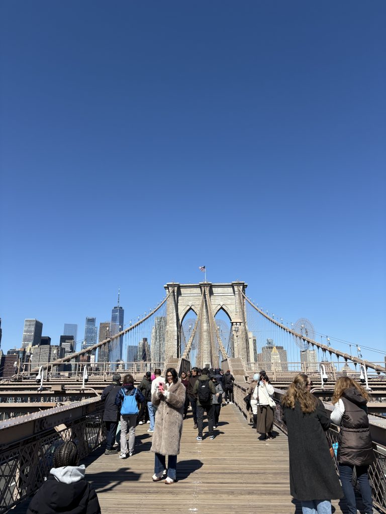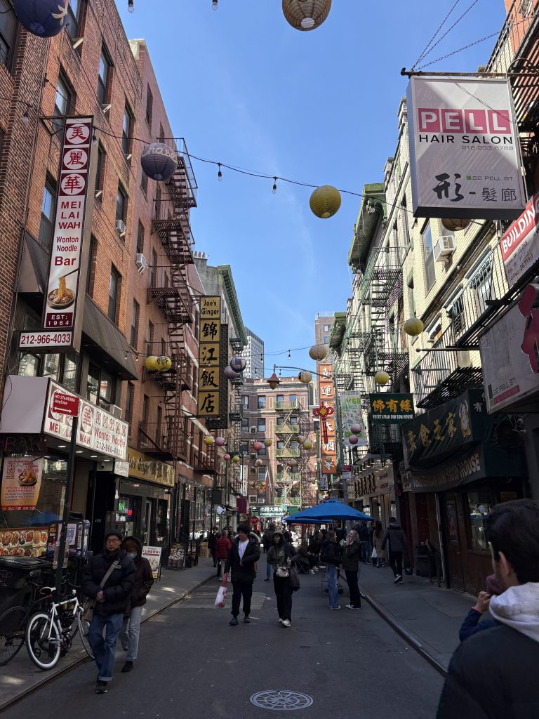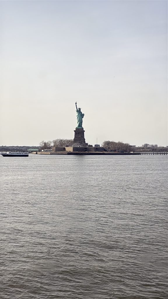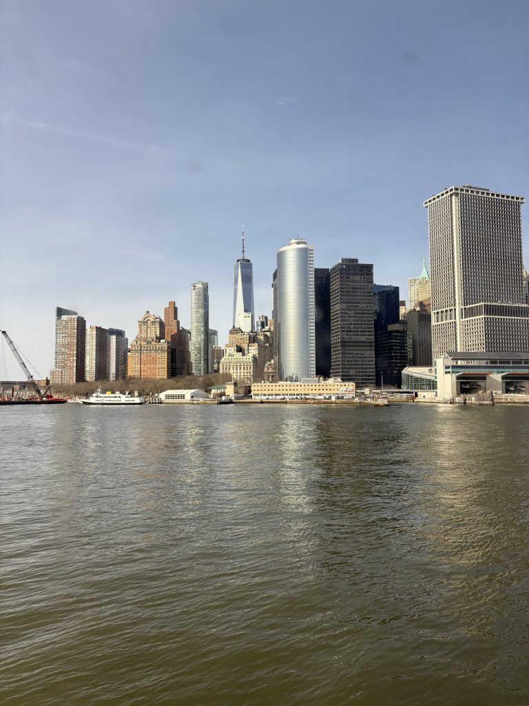 Am Tag danach waren wir noch einmal in der Stadt und sind dort zuerst zur Brooklyn Bridge gefahren, die wir auch überquert haben. Das war eigentlich sehr schön, aufgrund des Winds aber auch ziemlich kalt… Auf der anderen Seite haben wir den Blick auf Manhattan genossen und sind dann mit einer Fähre wieder zurück nach Manhattan gefahren. Dort waren wir in Chinatown, was für mich auch das erste Mal war. Das fand ich richtig krass, das war wie eine andere Welt dort. Auf einmal waren keine englischen Schilder mehr zu sehen und sogar die Häuser und Straßen sahen irgendwie anders aus. Wir haben dort jedenfalls in einem Restaurant gegessen, was ich sehr lecker fand, die anderen beiden fanden es nur so mittelmäßig… Vielleicht hatte ich mich mittlerweile so an das amerikanische Essen gewöhnt, dass mir das außergewöhnlich gut geschmeckt hat oder unsere Geschmäcker waren einfach verschieden. Als wir dort jedenfalls fertig waren, sind wir durch Little Italy spaziert und dann zum 9/11 Memorial gefahren. Das haben wir uns also angeguckt und sind danach mit einer Pause bei Starbucks zur Wall Street gelaufen. Anschließend sind wir mit der kostenlosen Staten Island Ferry an der Freiheitsstatue vorbeigefahren und haben uns dann wieder auf den Heimweg gemacht. Auf Long Island waren wir noch bei McDonald‘s, weil die anderen das mal in den USA ausprobieren wollten. Das war sehr lustig, weil wir alle ziemlich müde und deshalb aufgedreht und eben lustig drauf waren.