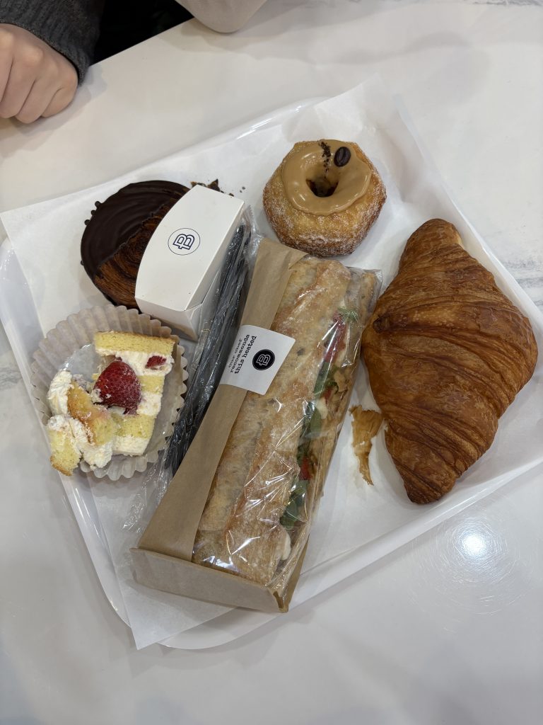 An den darauffolgenden Tagen musste ich wieder normal arbeiten, ich hatte also nur vormittags Zeit. Montags und Dienstags waren Lilli, Moritz und ich morgens frühstücken und danach sind die beiden wieder nach Manhattan gefahren. Montags waren wir morgens bei Paris Baguette, das ist eine Café-Kette, die sehr leckere Teilchen und guten Kaffee verkauft. Dienstags waren wir bei Soul Brew frühstücken, in dieses Café fahre ich ja oft freitags mit meinen Gasteltern, um Kaffee zum Mitnehmen zu kaufen. Lilli, Moritz und ich haben aber dort gefrühstückt, was sehr lecker war. Moritz hatte als Beilage eine Art Bratkartoffeln, die ich zum Schluss auch probiert habe und von denen ich sehr begeistert war haha ich hatte einfach schon sehr lange keine Bratkartoffeln oder Kartoffeln generell gegessen (ich wusste nicht, dass Kartoffeln anscheinend wirklich sehr deutsch sind…) und diese waren sehr lecker. Dadurch kam uns dann die Idee, dass wir zusammen etwas kochen könnten. Lilli und Moritz waren an dem Tag also in Manhattan bei einem deutschen Metzger und haben Bratwürste gekauft, die wir am nächsten Abend zubereitet haben. Morgens waren wir mittwochs aber erstmal in einem Bagelladen frühstücken und sind danach zu einem Supermarkt gefahren, wo wir noch ein paar Sachen für das Abendessen gekauft haben. Abends haben wir dann also Bratkartoffeln, Bratwürste und Bohnen gekocht. Das war sehr sehr lecker, es war einfach schön, mal wieder etwas Selbstgekochtes und so Vertrautes zu essen!