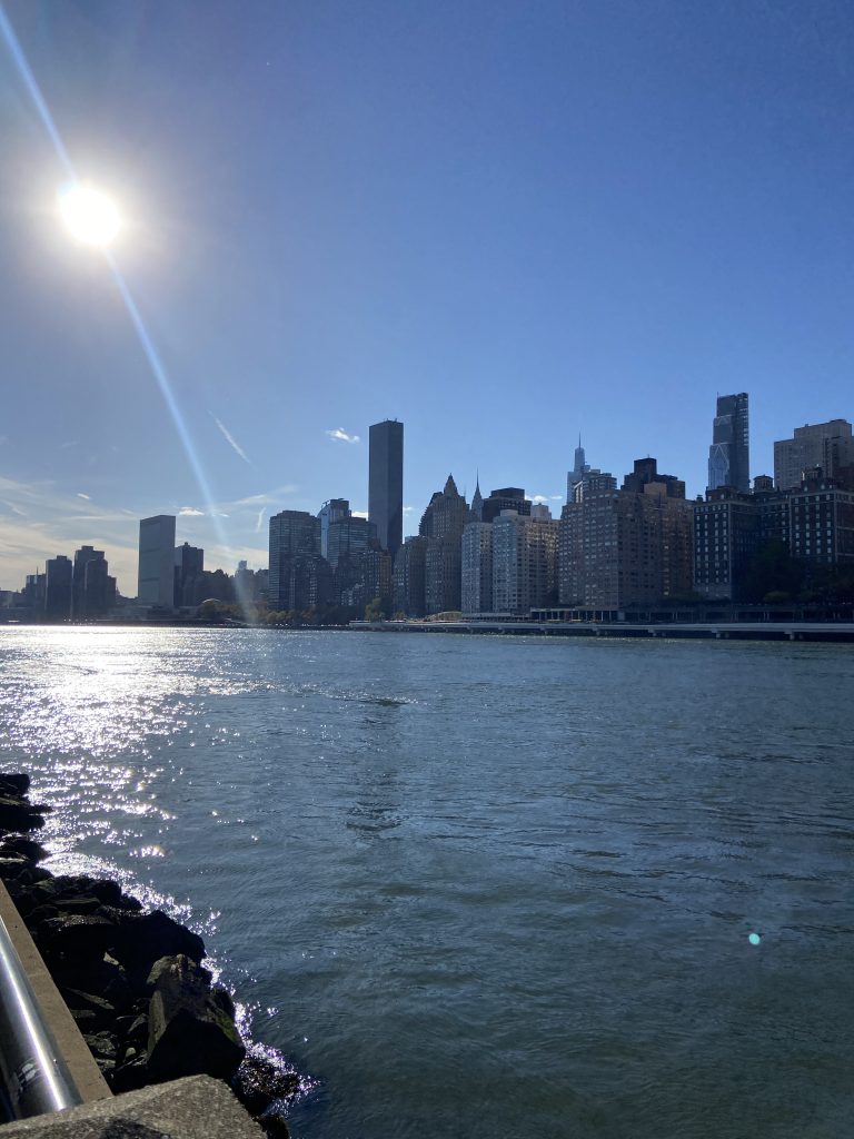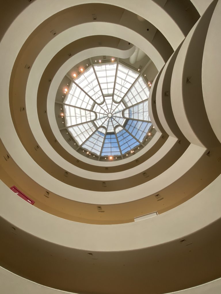 Am Samstag sind Papa und ich nach Manhattan gefahren, dort durch den Central Park spaziert und dann ins Guggenheim-Museum gegangen. Das Museum war wegen Bauarbeiten teilweise gesperrt, aber wir konnten trotzdem einiges sehen und vor allem diese berühmte Spirale konnten wir gut fotografieren. Man konnte sie aufgrund der Bauarbeiten nicht betreten, deswegen aber von unten ohne Menschen fotografieren. Viele der ausgestellten Kunstwerke fand ich sehr interessant und eindrucksvoll. Also der Besuch hat sich gelohnt 🙂 Als wir in dem Museum fertig waren, haben wir uns entschieden, mit einer Seilbahn nach Roosevelt Island zu fahren. Diese kleine Insel liegt genau zwischen Manhattan und Long Island. Die Seilbahnfahrt war nicht so cool, wie wir sie uns vorgestellt hatten, es war nämlich sehr voll und der Blick auf Manhattan war wesentlich schlechter als erwartet. Aber es war trotzdem schön, diese Erfahrung gemacht zu haben. Auf der Insel hatten wir dann gar nicht mehr so viel Zeit, weil wir auch einigermaßen pünktlich zum (relativ frühen) Abendessen wieder zu Hause sein wollten. Wir sind aber einfach ein bisschen am Wasser mit Blick auf Manhattan spaziert und haben einige Fotos gemacht. Die Rückfahrt verlief anders als geplant, weil wir den ersten Zug verpasst haben und den Zug der anderen Verbindung, die wir dann stattdessen rausgesucht hatten, ohne uns fahren lassen mussten. Mein Handy, auf dem die Tickets waren, ist nämlich kurz bevor der Zug kam ausgegangen, weil mein Akku leer war… Da ich allerdings auch kein Ladekabel dabei hatte, mussten wir in der Umgebung der Bahnhaltestelle erstmal ein Ladekabel kaufen, damit ich mein Handy mit Papas Powerbank aufladen konnte… Wir sind aber trotzdem noch fast pünktlich zum Abendessen wiedergekommen, was uns aber netterweise niemand übel genommen hat 🙂