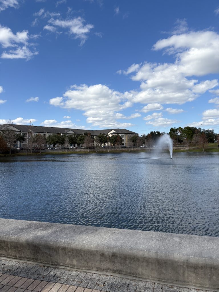 Am nächsten Morgen haben wir ausgeschlafen und ausgiebig gefrühstückt. Es gab deutsche Aufbackbrötchen und viel Aufschnitt, das war ganz toll. Ich konnte nach vielen Monaten mal wieder so richtig deutsch frühstücken, allein das war schon ein Traum hahah Den Tag über hat meine Freundin mir dann ihre Umgebung gezeigt, wir waren in einem sehr schönen Café, wir waren shoppen und ein bisschen in Oviedo, einer schönen Stadt im Großraum Orlando, spazieren. Außerdem ist es in Florida ja fast immer recht warm, es waren an dem Wochenende so um die 15°C. Für Florida war das eigentlich ziemlich kalt, aber für mich war das toll hahah in New York waren es ja die ganze Zeit so um die 0°C… Wir konnten uns richtig viel unterhalten, uns erzählen, was die letzten Jahre so passiert ist und hatten einfach eine echt schöne Zeit. Zwischendurch waren wir zum Mittagessen zu Hause, da hat die Mutter meiner Freundin tolles deutsches Mittagessen gekocht, nämlich Gulasch mit Kartoffeln und es gab noch Currywurst dazu. Ich weiß, eigentlich passt die Currywurst nicht dazu, aber ich fand es trotzdem toll haha das war alles sehr lecker. Abends waren wir zum Sonnenuntergang noch an einem See und haben zu Hause zwei Filme geguckt und uns danach noch unterhalten. Wir sind also wieder recht spät ins Bett gegangen… Aber es war alles sehr schön.