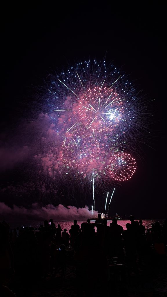 Zwei Tage später war der vierte Juli, das ist ja der Nationalfeiertag der USA. Dieser Tag wird hier bekanntlich riesig gefeiert. Den Vormittag hab ich mit meiner Gastfamilie verbracht, da ist eigentlich nichts interessantes passiert. Nachmittags hab ich mich dann aber mit einem anderen Au Pair aus Dix Hills am Jones Beach getroffen. Dort war abends ein großes Feuerwerk über dem Wasser, was sehr schön war. Der Strand war extrem voll, aber es war trotzdem ein richtig cooles Erlebnis. Das Au Pair aus Dix Hills hat auch noch eine andere Freundin mitgebracht, die etwas westlicher auf Long Island wohnt, und später kam noch ein „Bro Pair“ dazu (so nennt man männliche Au Pairs). Wir hatten einen sehr schönen Nachmittag, wobei ich mich letztendlich mit der Freundin des Au Pairs, mit dem ich mich eigentlich getroffen hatte, besser verstanden habe. Das Au Pair aus Dix Hills war auch sehr nett, wobei ich danach nie wieder was mit ihr gemacht habe. Mit dem anderen Au Pair bin ich aber in Kontakt geblieben, sie heißt Giovana und kommt aus Brasilien. Der Abend war insgesamt aber sehr cool und das Feuerwerk war auch sehr schön! Die Rückfahrt war allerdings ein bisschen anstrengend. Nach dem Feuerwerk wollten natürlich alle gleichzeitig nach Hause und da waren sehr viele Menschen. Ich habe einfach eine Stunde gebraucht, um nur vom Parkplatz runterzukommen und danach musste ich immer noch 45 Minuten nach Hause fahren… Und ich musste die ganze Zeit ziemlich dringend auf die Toilette hahaha irgendwann bin ich aber auch angekommen.