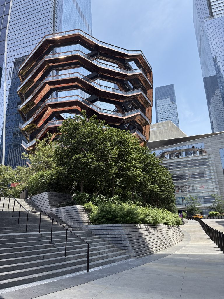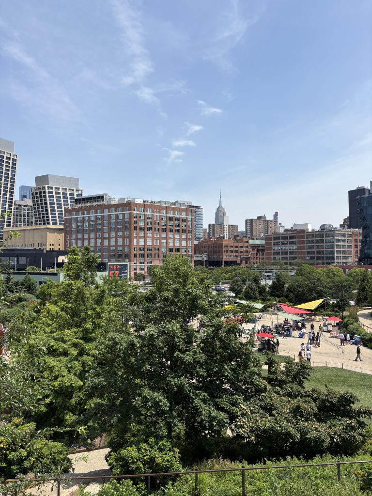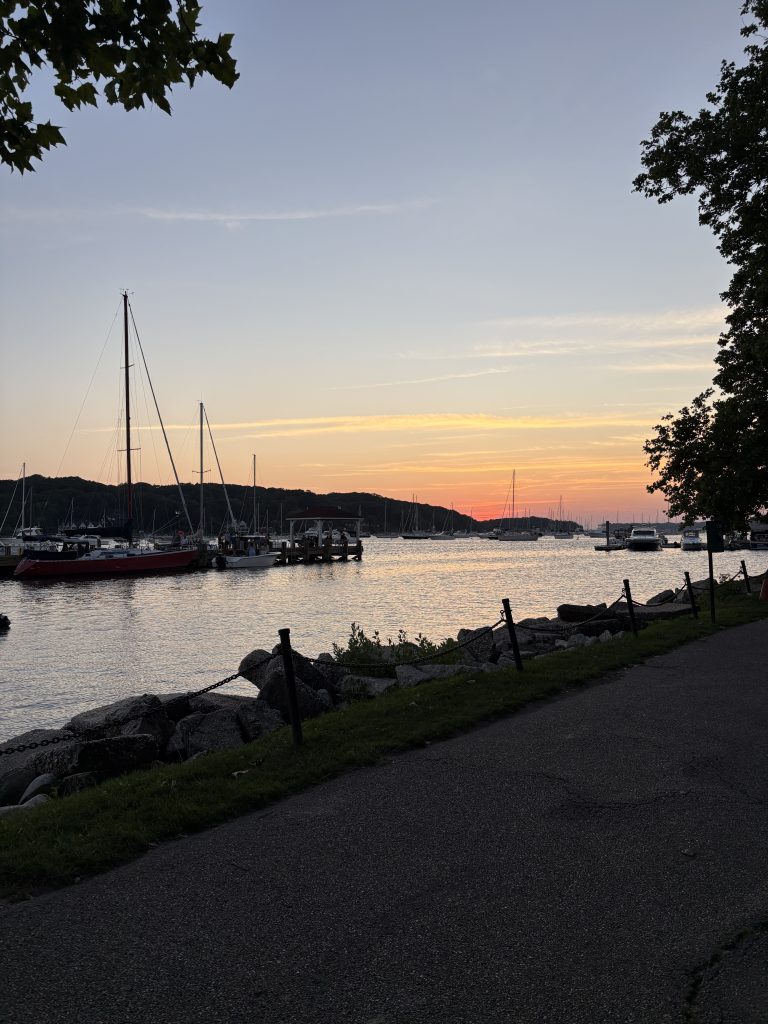 Am nächsten Tag war ich mit Bruna in der Stadt, was sehr schön war. Wir sind die High Line entlang gelaufen und haben in der Nähe einen Kaffee getrunken. Das Café hatte einen richtig schönen kleinen Garten, wo wir gesessen und uns unterhalten haben. Das habe ich sehr genossen! Als wir die High Line zu Ende gelaufen waren, haben wir kurz den Chelsea Market besucht und waren dann auf Little Island. Das ist eine kleine künstlich angelegte Insel, auf der man sehr schön rumspazieren kann. Danach waren wir noch kurz in der Shopping Mall Hudson Yards, weil wir uns ein bisschen abkühlen wollten, es war nämlich sehr warm an dem Tag. Und wenn es in New York City warm ist, wird es sehr drückend und schwül. Wir haben uns dann schon am Nachmittag wieder auf den Rückweg gemacht, wobei wir noch ein wenig auf unseren Zug warten mussten. An der Penn Station ist oben so ein kleiner Platz, der heißt Plaza 33, und da war gerade ein kostenloses kleines Jazz-Konzert, was ich sehr cool fand. Da saßen wir also noch ein bisschen und haben auf den Zug gewartet. Abends habe ich mit meiner Gastfamilie zu Abend gegessen und danach sind wir noch nach Northport, eine sehr schöne kleine Stadt auf Long Island, gefahren, um dort ein Eis zu essen. Das war richtig schön, da ist ein kleiner Hafen, wo wir noch ein bisschen den Sonnenuntergang geguckt haben und die Kinder haben auf einem Spielplatz dort gespielt.