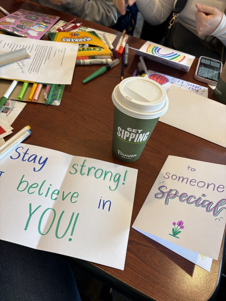 Also, Anfang Februar war ich ja für einen Wochenend-College-Kurs an der Long Island University, darüber hatte ich ja im letzten Blogpost geschrieben. In der Woche danach war auch direkt schon das Cluster Meeting für den Monat Februar. Wir haben uns bei Panera Bread, das ist eine Restaurant/Café-Kette, wo ich auch ganz gerne mal hingehe, getroffen und dort anlässlich des Valentinstages Karten für Kinder im Krankenhaus gestaltet. Das war ganz schön und es hat Spaß gemacht, sich so ein bisschen kreativ zu beschäftigen. Nach dem eigentlichen Cluster Meeting haben Flori und ich dort noch etwas gegessen und uns unterhalten. Dieses Cluster Meeting war ausnahmsweise mal vormittags unter der Woche, weil viele Au Pairs zu dieser Zeit frei haben, da ihre Gastkinder zur Schule gehen. Daher hatten wir allerdings auch nicht allzu viel Zeit uns zu unterhalten, weil wir ja rechtzeitig zur Arbeit wieder zu Hause sein mussten. Es war aber ein schöner Vormittag!