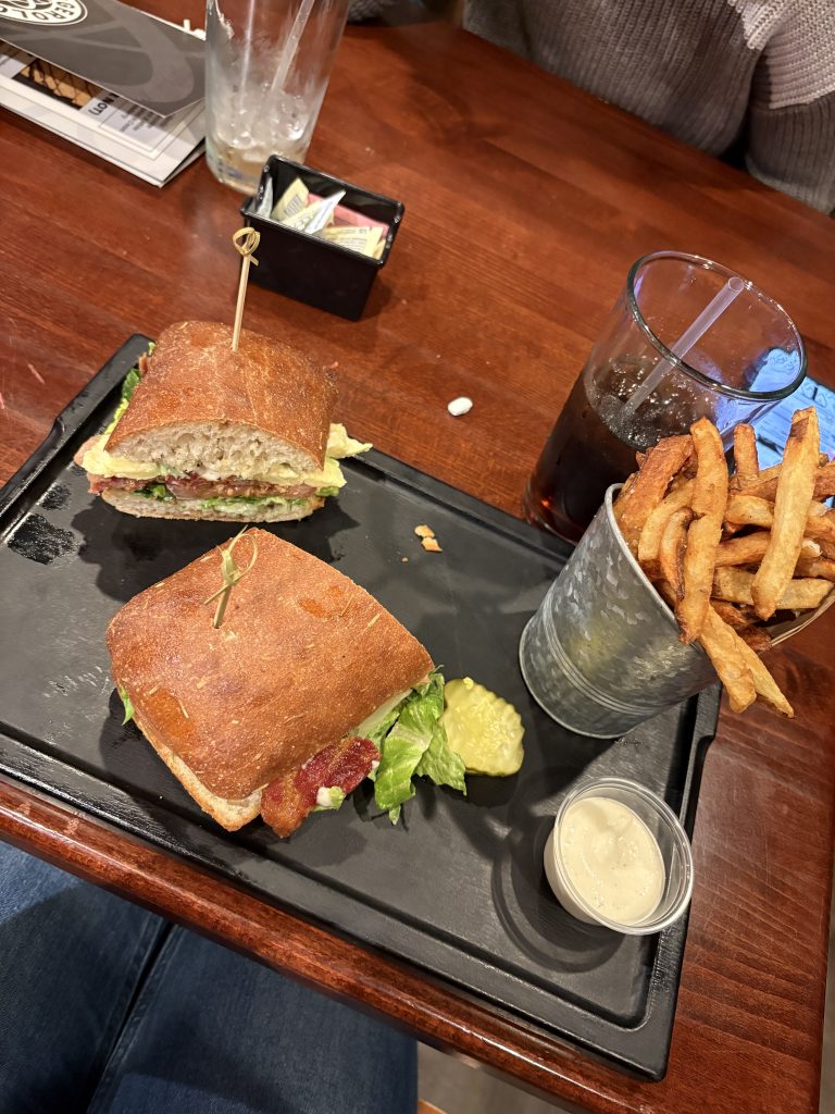 Ansonsten war ich an dem Wochenende danach sonntags mit einigen aus der Gemeinde in einem Burgerrestaurant, das war sehr schön und sehr lecker. Es tut immer gut, mit anderen Leuten etwas zu machen, sich einfach zu unterhalten und Gemeinschaft zu haben. Und wenn ich jetzt so drüber nachdenke, ist es auch ziemlich cool, dass ich einfach mit so vielen richtigen Amerikanern am Tisch saß, die ich komplett alleine quasi kennengelernt habe. Also mich hat ihnen niemand vorgestellt oder so, ich habe die ja nur kennengelernt, weil ich mich getraut habe, ganz allein in eine fremde Gemeinde zu fahren und dort mal zum Gottesdienst zu gehen. Das ist schon echt cool, vor allem, weil ich ja sonst auch gerne mal etwas zurückhaltender bin. Ich bin echt dankbar dafür, dass ich in den Gemeinden, in die ich hier gehe und gegangen bin, immer so viele Menschen kennenlernen kann und so hier meine Gemeinschaft sozusagen aufbaue!