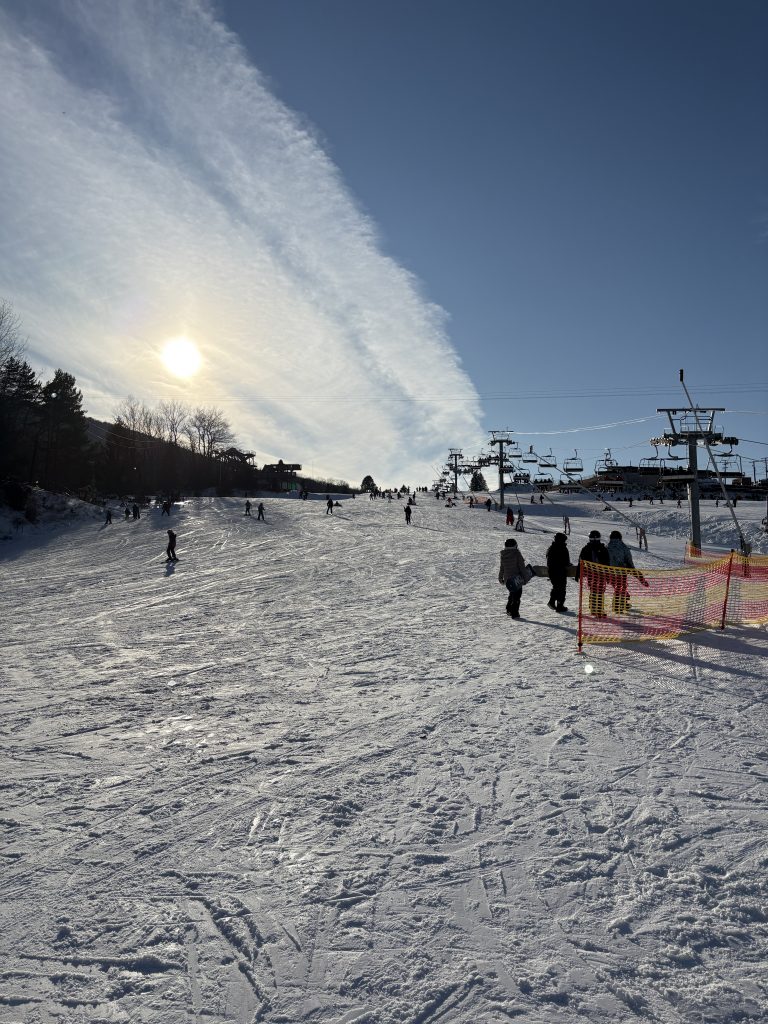 In der Woche danach musste ich sehr viel arbeiten, denn mein älteres Gastkind hatte die ganze Woche Winterferien, ich musste also die ganze Zeit auf sie aufpassen. An dem Freitag hab ich dann vormittags irgendwas mit ihr gemacht, als mich meine Gastmutter (die arbeitet freitags meistens nicht und war deshalb zu Hause) zu sich gerufen hat und mich gefragt hat, ob ich Pläne für das Wochenende hätte. Ich habe verneint, woraufhin sie mich gefragt hat, ob ich dann mit ihnen Skifahren kommen wollen würde. Das habe ich bejaht und sie meinte, dass sie gerade eine Unterkunft gebucht hätte und wir in ungefähr drei Stunden losfahren würden. Ich habe also meine Sachen gepackt und auch für die Kinder einige Sachen gepackt und als mein jüngeres Gastkind dann wieder von der Schule da war, sind wir losgefahren nach Pennsylvania. Dort sind wir abends auch angekommen, haben aber an dem Abend nichts mehr wirklich gemacht. Am nächsten Tag sind wir aber morgens zum Camelback Ski Resort gefahren, wo die Kinder und ich erstmal Skisachen ausgeliehen haben und danach eine private Skistunde hatten. Das war auch eigentlich ziemlich cool und hat Spaß gemacht. Der Skilehrer meinte auch, ich könne das richtig gut und sei ein Naturtalent. Als ich nach der Stunde allerdings alleine auf dem Übungshügel war, habe ich die Kontrolle verloren, bin zu schnell geworden, konnte nicht bremsen und bin hingefallen. Ich habe mir aber zum Glück nicht wehgetan und habe es danach nochmal versucht. Es ist wieder dasselbe passiert und dann habe ich entschieden, dass das eine schöne Erfahrung war, mal Skifahren auszuprobieren, dass ich es aber nicht unbedingt nochmal machen muss. Den Nachmittag habe ich also mit meinem Gastvater und meinem jüngeren Gastkind in der Cafeteria verbracht (in der es Pizza, Pommes und Burger anstatt Kaiserschmarren gab…), während meine Gastmutter mit meinem älteren Gastkind auf höheren Pisten war. Insgesamt war der Tag aber trotz allem ziemlich schön.