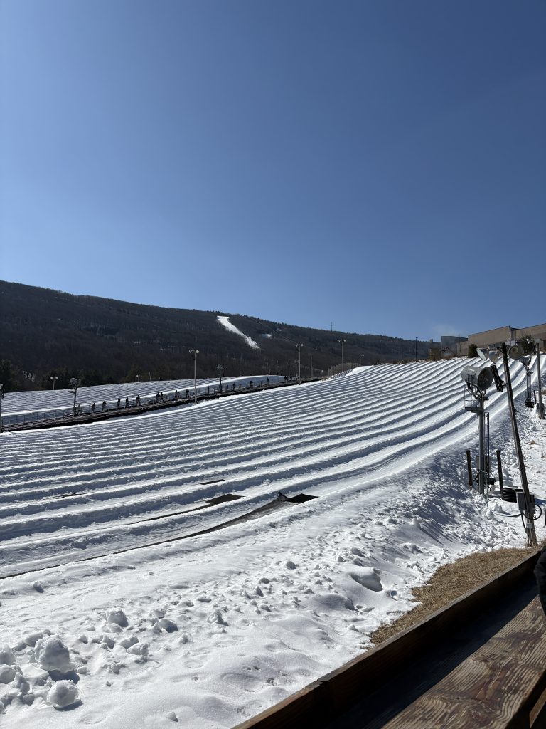 Am nächsten Tag waren wir beim Snowtubing, das war ziemlich cool. Das ist ein Hügel, wo so Bahnen eingegraben sind, die man dann auf Tubes (wie Schwimmringe, aber mit Boden und für Schnee) runterrutscht. Das hat echt Spaß gemacht, wir sind ungefähr fünf Mal gerutscht. Man muss oben immer recht lange anstehen, weil immer alle Bahnen gleichzeitig gerutscht werden sozusagen, aber dann muss man halt warten, bis unten alle weg sind und die Nächsten rutschen können. Außerdem gehört diese Snowtubing-Anlage auch zu Camelback und da ist es sowieso im Winter immer voll. Aber es war trotzdem ziemlich cool und wir hatten echt Spaß. Danach sind wir wieder zur Ferienwohnung gefahren, haben alles zusammengepackt und sind auch schon wieder nach New York gefahren.