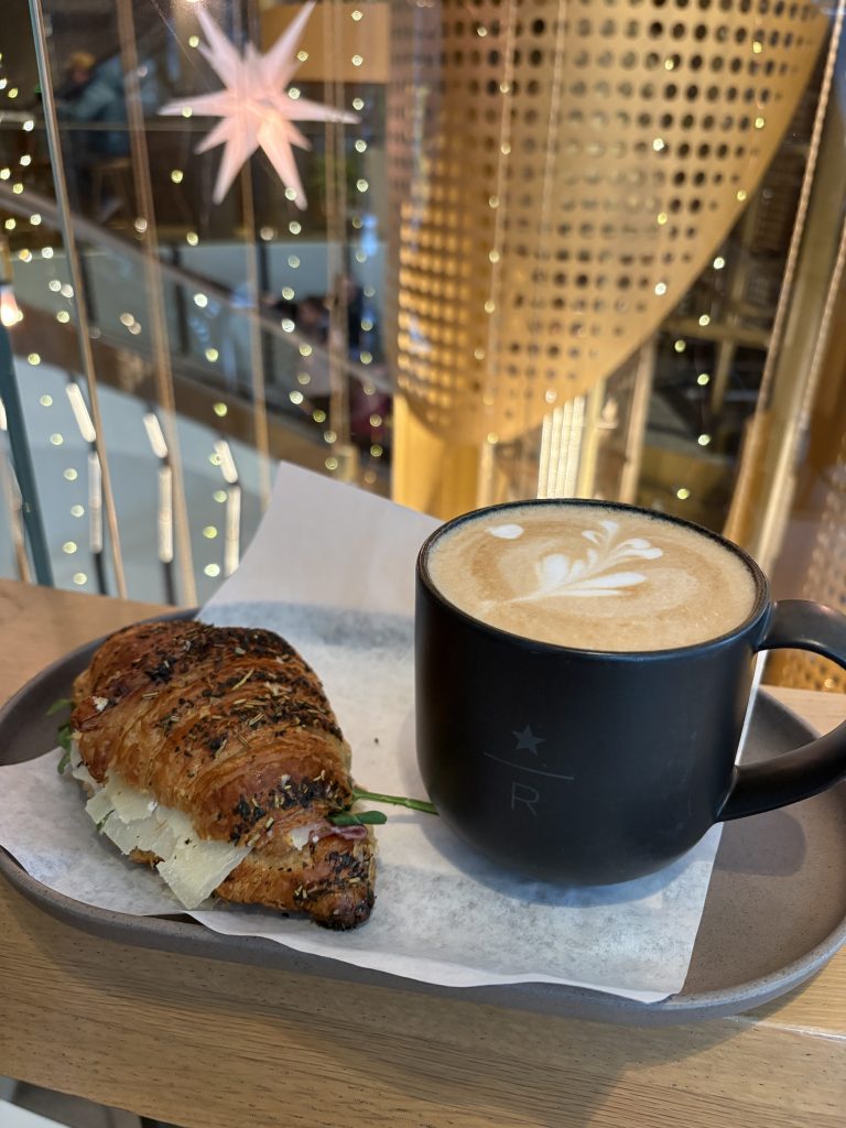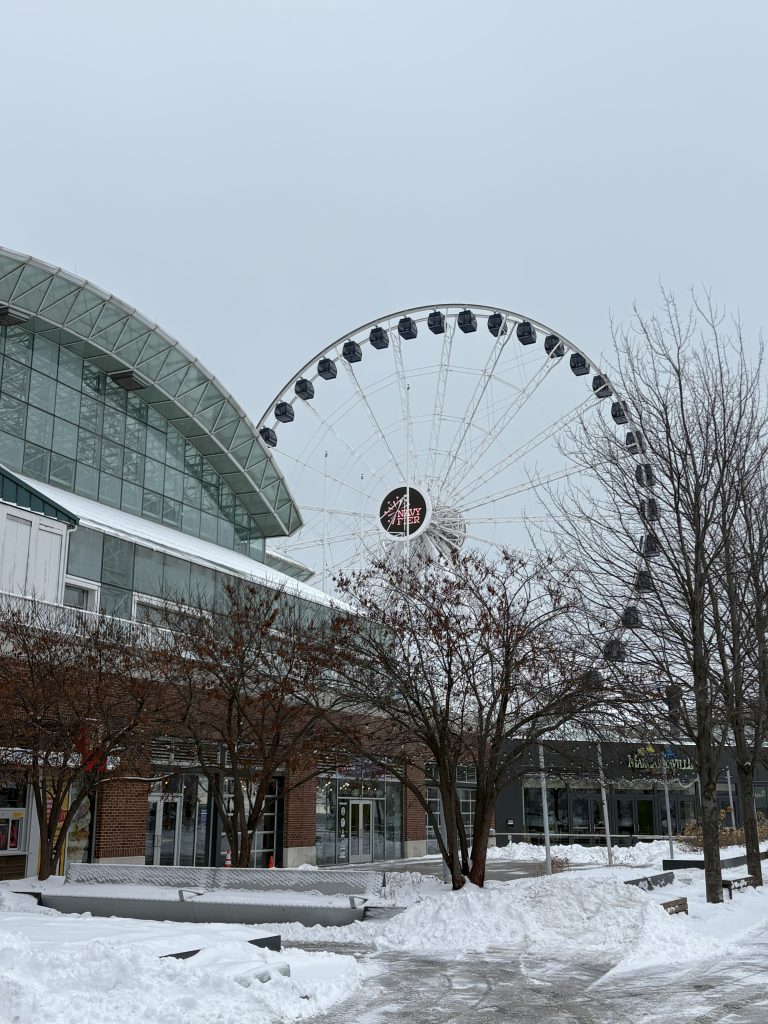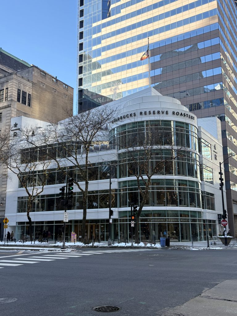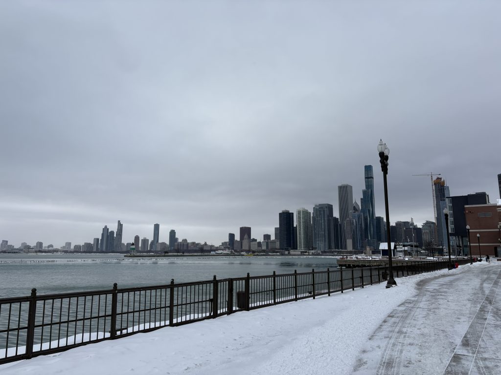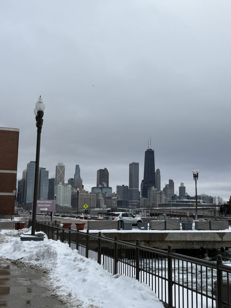 Am nächsten Tag waren wir morgens erstmal in einem sehr großen Starbucks. Der heißt Starbucks Reserve und hatte mehrere Etagen. Dort haben wir sehr lecker (und etwas teuer) gefrühstückt. Von dort sind wir zum Navy Pier gelaufen, wo wir einmal drüber spaziert sind. Das ist ja eigentlich eine der Aktivitäten, die man in Chicago auf jeden Fall machen sollte, aber irgendwie war da gar nichts, als wir da waren. Könnte aber auch daran liegen, dass es gerade 10:30 Uhr und unter 0 Grad Celsius kalt war… Das Wasser da in diesem Hafen war auch teilweise zugefroren. Es war also sehr kalt und auf diesem Pier dazu auch noch windig, aber es ist trotzdem gut, mal da gewesen zu sein. Anschließend sind wir zum Chicago Riverwalk gelaufen und da am ebenfalls teils zugefrorenen Fluss entlang spaziert. Das war eigentlich auch ganz cool und schön da. Wir haben auch so Boote in dem Fluss gesehen, wo Whirlpools drin waren. Das fand ich irgendwie lustig, sah aber auch ganz angenehm aus irgendwie. Aber das waren einfach heiße Whirlpools in eiskaltem Wasser! Sowas findet man auch irgendwie nur in Amerika.