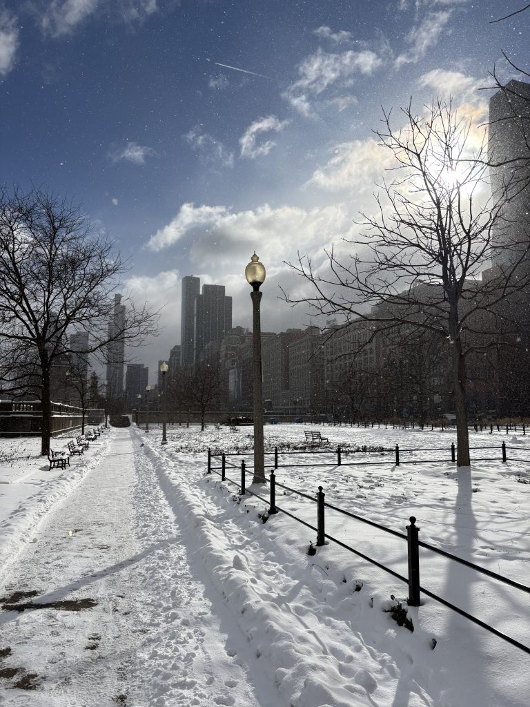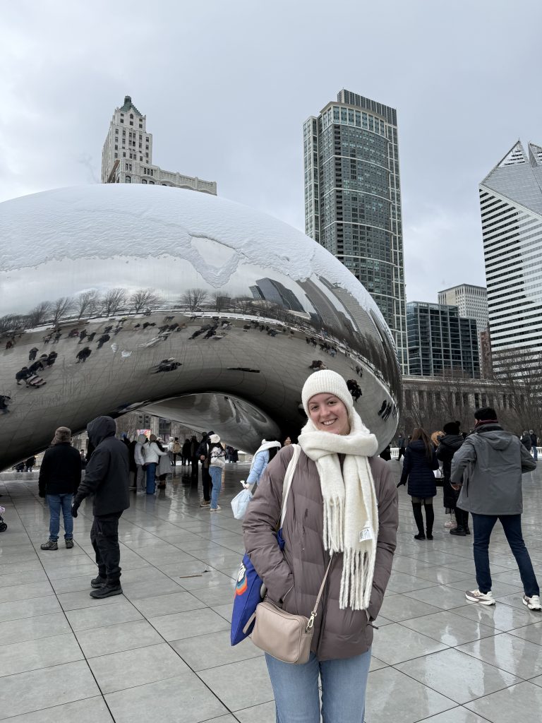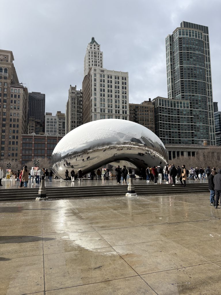 Dann sind wir zu einem Theater gelaufen, was außen ein großes Schild hat, wo Chicago draufsteht. Da haben wir aber eigentlich auch nur zwei Fotos gemacht und sind weitergelaufen. Da in der Nähe waren auch einige Läden, wo wir uns ein paar Sachen gekauft haben. Ich habe da zum Beispiel einen Pullover gekauft, den ich jetzt gerade anhabe hahah Anschließend sind wir zur berühmten Bohne gelaufen und haben dort ebenfalls Fotos gemacht. Leider war es an dem Tag recht bewölkt und es lag ja überall Schnee, von daher sind die Fotos relativ grau, aber es war trotzdem sehr cool, diese Bohne mal in echt zu sehen. Danach haben wir etwas gegessen und sind noch durch den Millennium Park da gelaufen, das ist der Park, in dem auch diese Bohne steht. Da ist dann auch die Sonne rausgekommen, das war sehr schön.